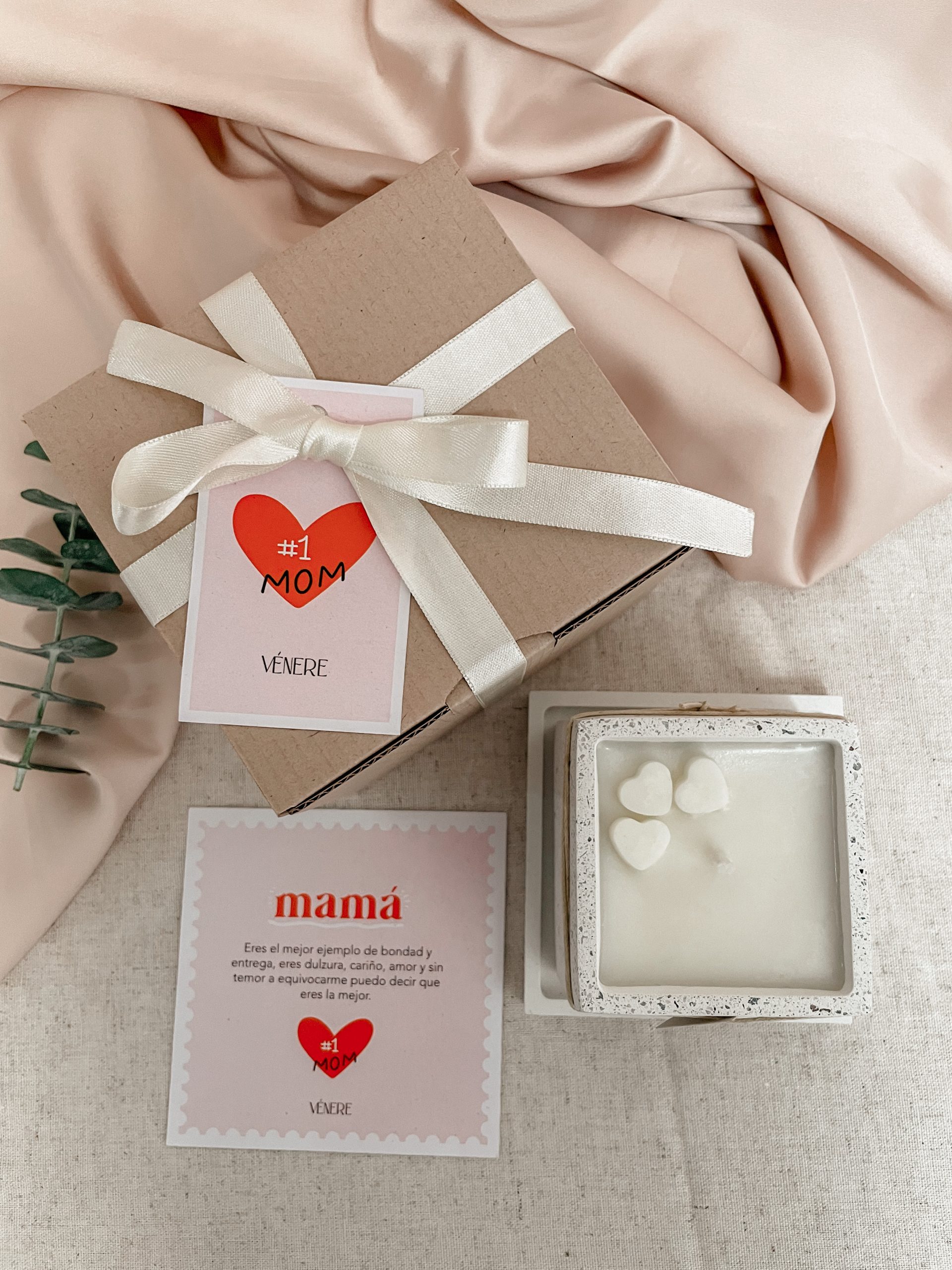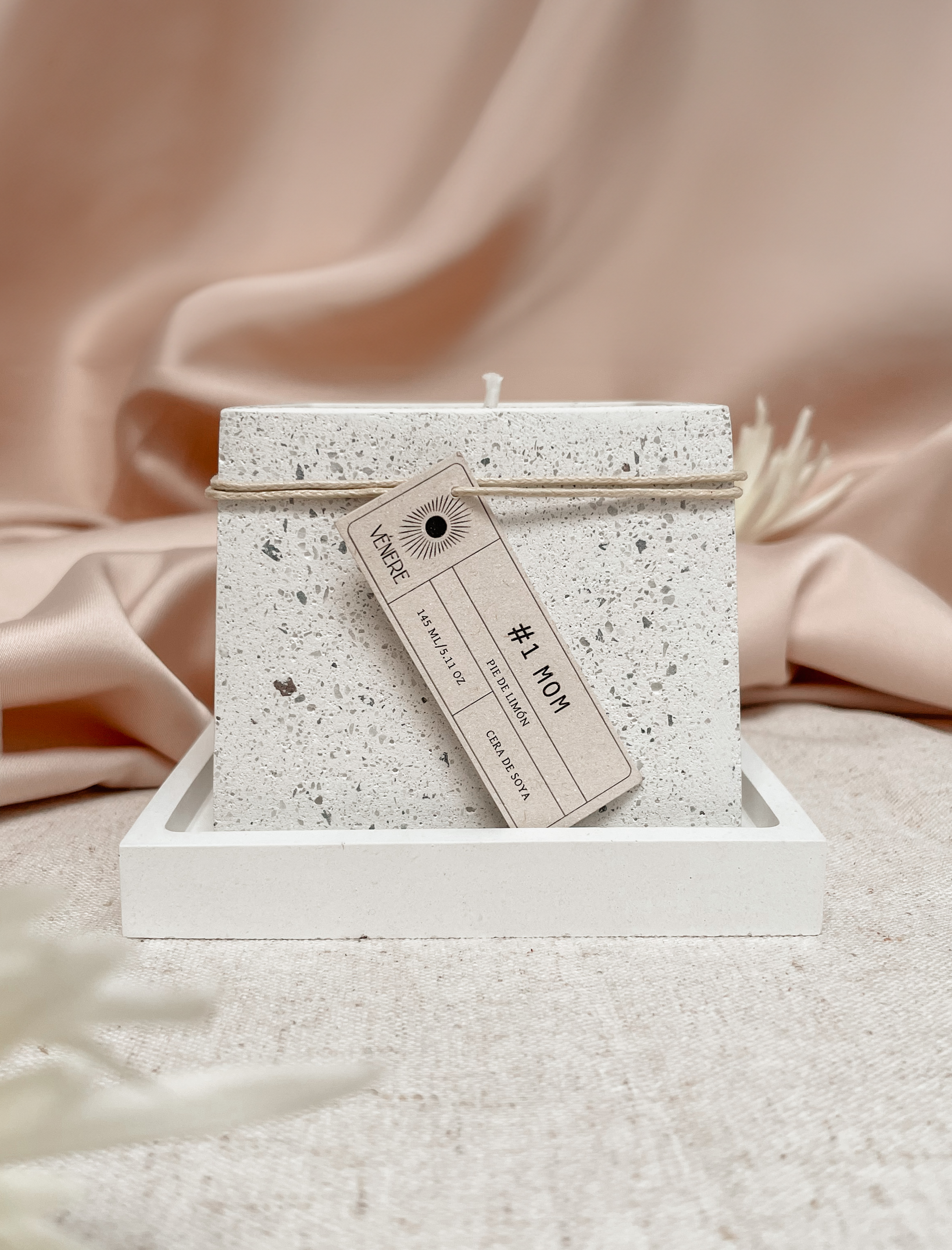 La vela #1 Mom es mucho más que un simple regalo; es una expresión de amor y gratitud hacia esa persona especial que ocupa el primer lugar en nuestro corazón: mamá. Diseñada en un envase de concreto y granito, esta vela no solo añade un toque de elegancia a cualquier espacio, sino que también emana un reconfortante aroma a pie de limón, que invita a la relajación y al bienestar.